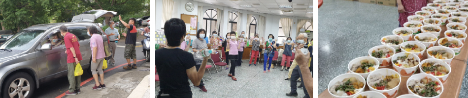 (3) 餐飲服務: 於每次健康促進活動後,以集中用餐方式提供營養餐食,或是針對無法來據點之長輩提供送餐服務,此能維持健康需求外,亦可減少高齡老人炊食之危險及購物之不便,幫助老人與社會接觸,獲得情緒支持。