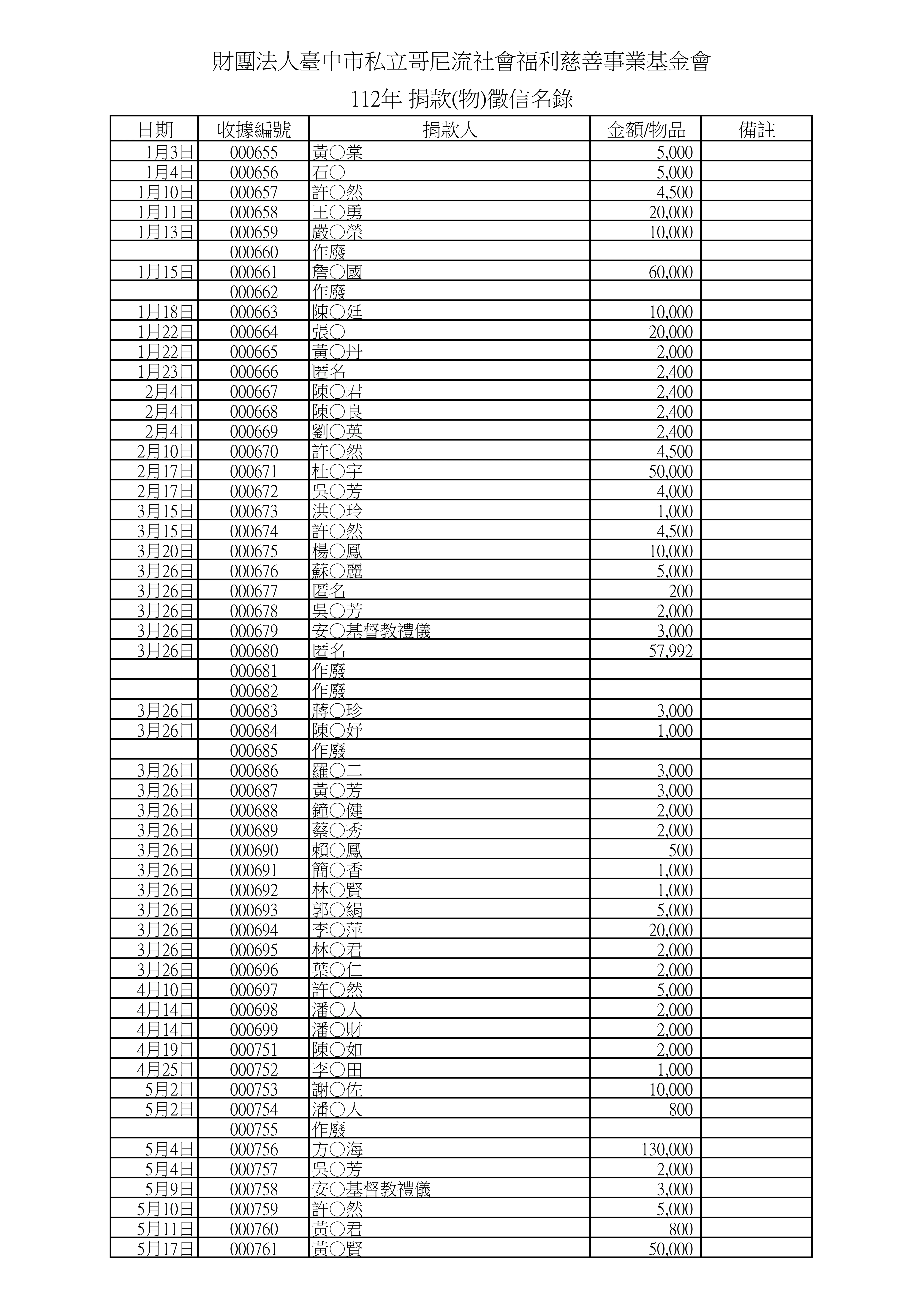 112年捐款名錄